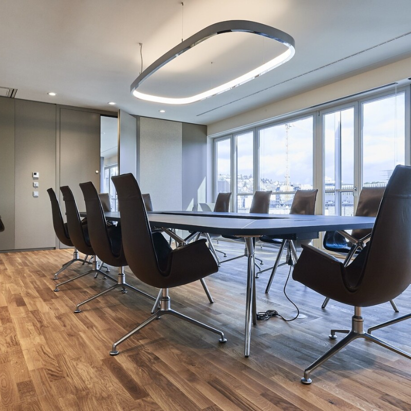 Phòng họp là nơi diễn ra các cuộc thảo luận, trao đổi và ra quyết định quan trọng của doanh nghiệp. Vì vậy, ánh sáng trong khu vực này cần rõ ràng và đồng đều để tạo cảm giác chuyên nghiệp. Đèn LED panel hoặc đèn âm trần thường được sử dụng cho phòng họp vì khả năng chiếu sáng rộng và ổn định. Ánh sáng hợp lý sẽ giúp không gian trở nên trang trọng hơn và hỗ trợ quá trình trao đổi diễn ra hiệu quả. Đối với khu vực tiếp khách, ánh sáng nên tạo cảm giác ấm áp và thân thiện. Điều này giúp khách hàng cảm thấy thoải mái khi đến làm việc tại văn phòng.