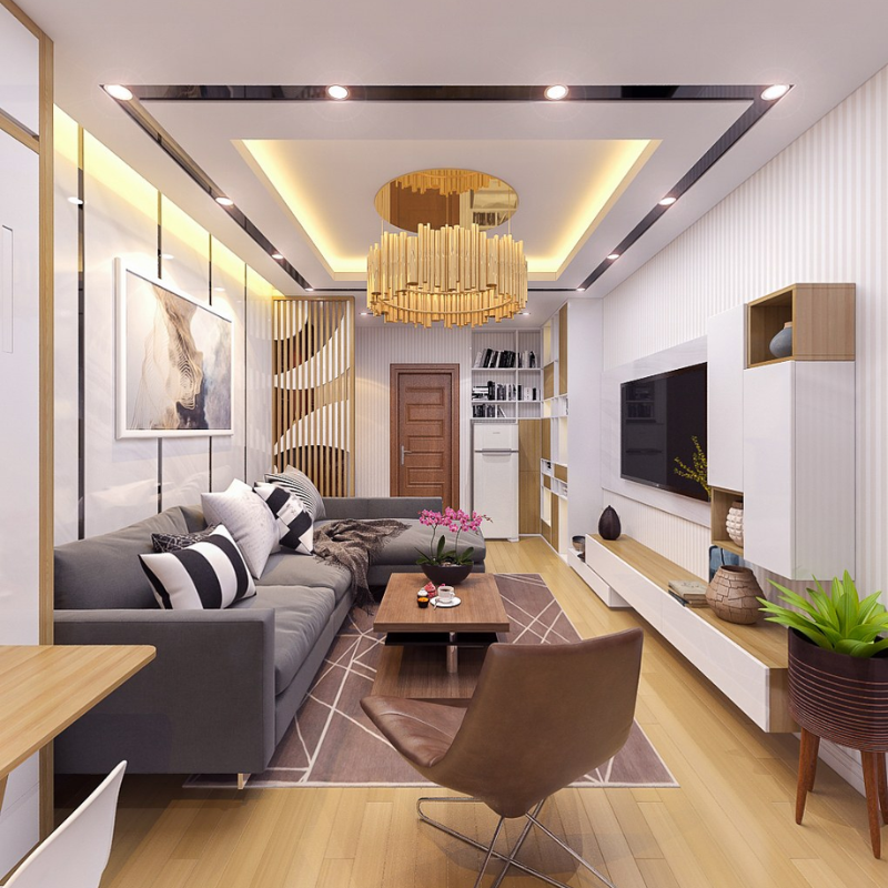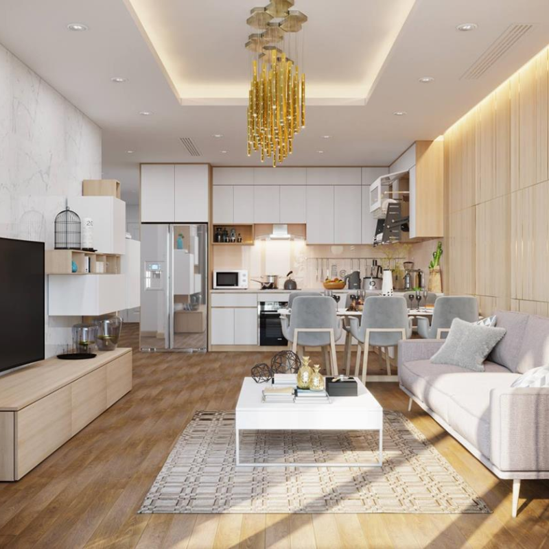 Phòng khách: Phòng khách là trung tâm của ngôi nhà, nơi tụ khí và thể hiện vận thế của gia chủ. Do đó, nên sử dụng ánh sáng vàng ấm (Thổ) làm chủ đạo – vừa tạo cảm giác gần gũi, vừa mang ý nghĩa nuôi dưỡng năng lượng tích cực. Kết hợp thêm ánh sáng trắng nhẹ (Kim) từ đèn trần hoặc đèn hắt tường giúp không gian sang trọng, sáng rõ hơn. Nếu phòng khách hướng Nam (thuộc Hỏa), nên tiết chế tông đỏ – cam, tránh dư Hỏa, thay vào đó thêm ánh sáng vàng hoặc trắng để cân bằng. Phòng khách hướng Bắc (thuộc Thủy) nên có ánh sáng vàng hoặc cam nhẹ để “chế khắc” hành Thủy, tạo cảm giác ấm áp, tránh lạnh lẽo. Ngoài yếu tố ánh sáng, gia chủ nên lưu ý cả về những yếu tố khác khi lựa chọn đèn chiếu sáng để mang lại nhiều may mắn cho gia đình thông qua bài viết Phong thủy đèn chiếu sáng phòng khách – Hút tài lộc vào nhà