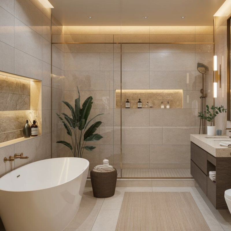 Phòng tắm, khu vực thủy khí mạnh: Phòng tắm và các khu vực có thủy khí mạnh như nhà vệ sinh, khu giặt phơi thường mang năng lượng hành Thủy chiếm ưu thế, dễ gây cảm giác lạnh lẽo, ẩm thấp nếu không được cân bằng hợp lý. Trong phong thủy ánh sáng, nên sử dụng ánh sáng trắng ấm hoặc vàng nhạt để “chế khắc” bớt năng lượng Thủy, đồng thời bổ sung yếu tố Thổ – Hỏa giúp không gian trở nên ấm áp và sạch sẽ hơn. Ánh sáng vàng nhẹ mang đến cảm giác thư giãn, trong khi ánh sáng trắng ấm giúp tăng độ sáng, tạo cảm giác khô ráo và tinh tươm. Sự kết hợp này không chỉ cải thiện thẩm mỹ mà còn giúp cân bằng trường khí, hạn chế tà khí tích tụ và giữ cho dòng năng lượng trong nhà lưu thông ổn định. Ngoài ra, nên tránh dùng ánh sáng xanh lam hoặc quá lạnh, vì chúng có thể làm tăng tính Thủy, khiến không gian trở nên u ám, dễ gây bất an và mệt mỏi cho người sử dụng.