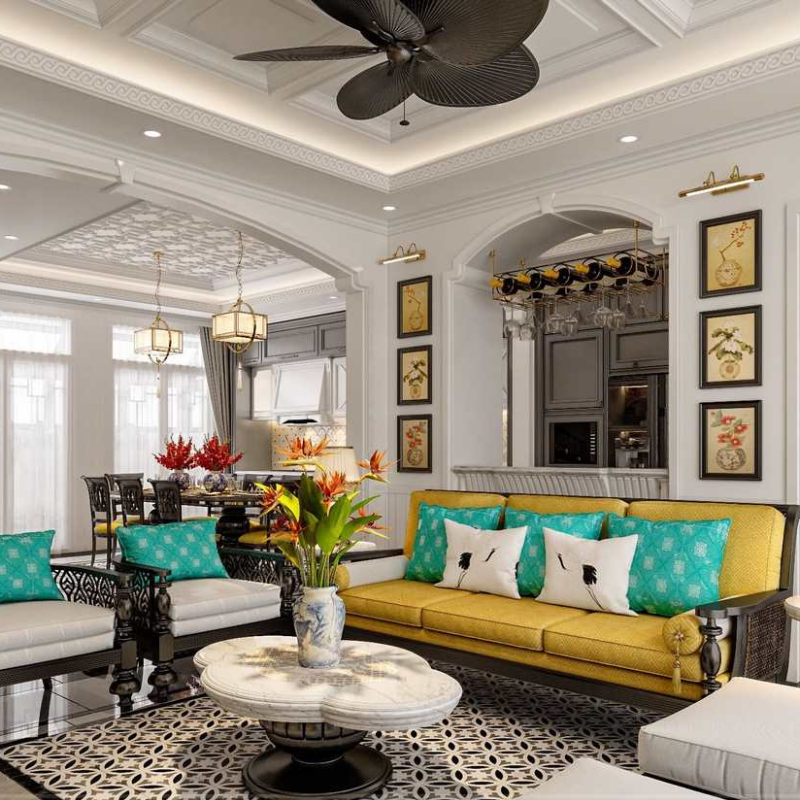 Phong thủy chiếu sáng cho nhà thông tầng cũng là yếu tố người tuổi Ngọ cần đặc biệt quan tâm, bởi đây thường là khu vực trung tâm dẫn khí và phân bổ ánh sáng cho toàn bộ ngôi nhà. Phòng khách là không gian giữ vai trò kích hoạt tài lộc và các mối quan hệ, vì vậy việc lựa chọn đèn trần hoặc đèn chùm có ánh sáng dịu, phân bổ đều sẽ giúp dòng năng lượng lưu thông ổn định, tránh tạo vùng tối hoặc tụ khí xấu.