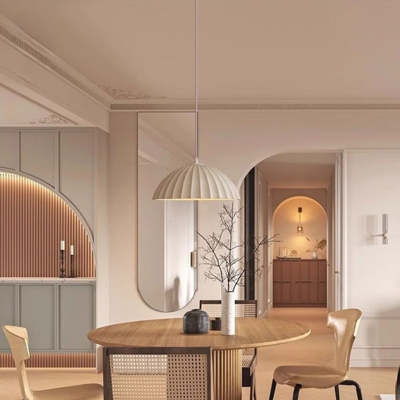 Tác dụng: Kết hợp Thổ (chao gốm) và Kim (dây treo) tạo tương sinh Thổ sinh Kim. Vị trí: Bàn ăn (tạo sự ấm cúng), đảo bếp (hỗ trợ kinh doanh). |