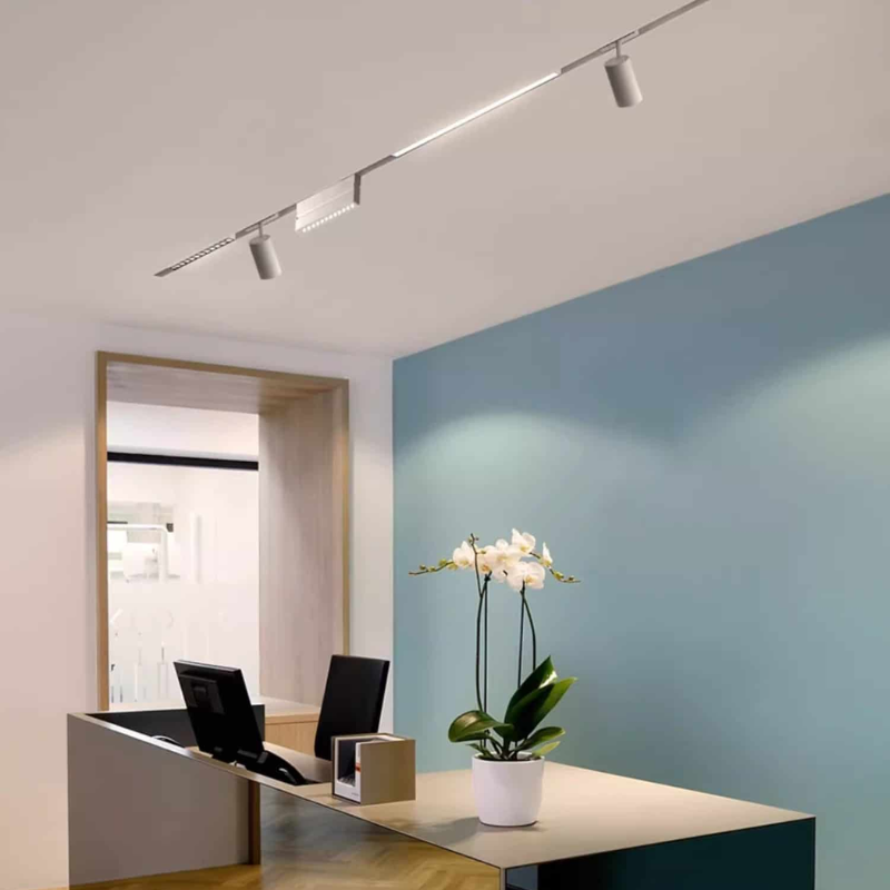 Phòng làm việc – học tập: Không gian làm việc và học tập cần nguồn năng lượng dương ổn định, vì vậy ánh sáng trắng hoặc trắng hơi vàng (4000K–5000K) là phù hợp nhất. Loại ánh sáng này vừa đủ sáng để kích thích tập trung, vừa không gây chói mỏi mắt. Theo nghiên cứu khoa học, ánh sáng trắng trung tính giúp não bộ tỉnh táo, tăng khả năng ghi nhớ và duy trì tinh thần làm việc lâu hơn. Ngược lại, ánh sáng vàng đậm hoặc mờ có thể khiến cơ thể tiết melatonin sớm, gây buồn ngủ, làm trường khí trở nên nặng nề, trì trệ. Do đó, ngoài đèn trần, nên bố trí thêm đèn bàn học có chao khuếch tán ánh sáng và chức năng điều chỉnh độ sáng. Đặt đèn ở vị trí hợp lý cũng giúp năng lượng di chuyển hài hòa, tránh bóng đổ hoặc ánh sáng phản ngược lên mặt bàn.