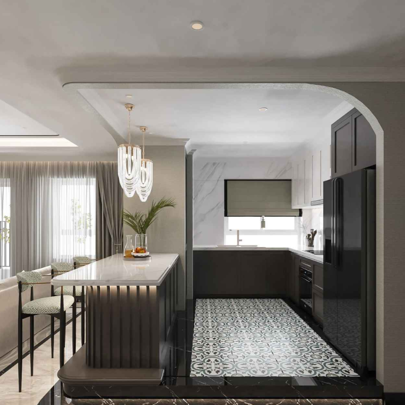 3. Bố trí đèn khu vực làm việc và bếp